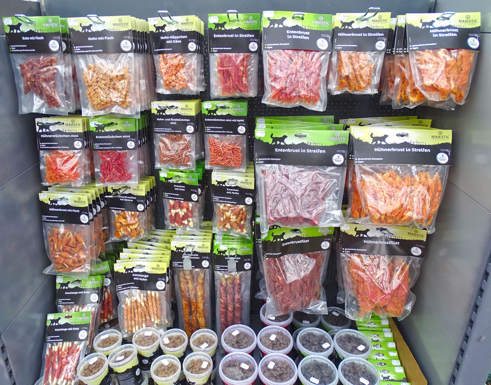 Ab sofort finden Sie bei uns feine Hundesnacks der Marke Majestic, die für Qualität und sorgfältig ausgewählte Zutaten stehen. Die Snacks werden schonend hergestellt und sind ideal als Belohnung oder kleiner Genuss zwischendurch. Ergänzt wird das Sortiment durch robustes und abwechslungsreiches Hundespielzeug, das Beschäftigung und Freude bringt. So bieten wir alles, was Hundeherzen höherschlagen lässt