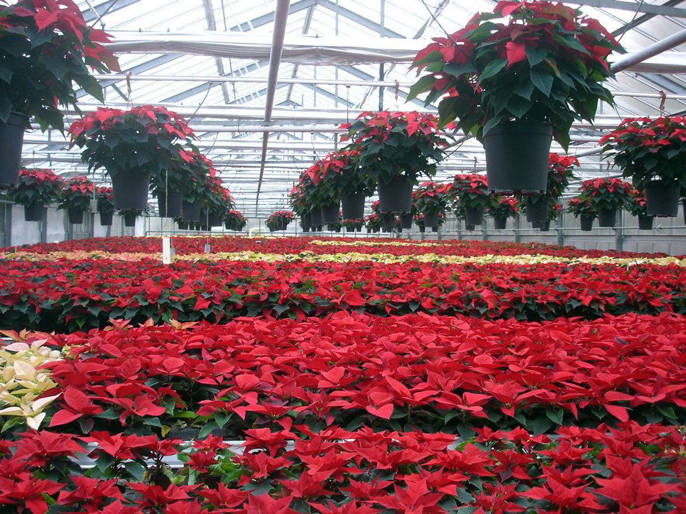 Unser Highlight: Tausende Weihnachtssterne aus der eigenen Gärtnerei.